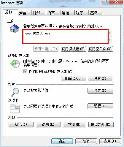 2)然后在打开的对话窗口中的主页栏的地址输入框中输入“http://wap.4385.cn/”,然后点击窗口上方的“应用”按扭即可,如下图所示: