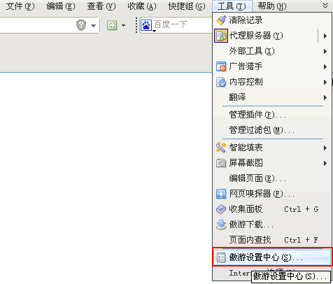 傲游浏览器设置主页的方法: 1)首先,打开浏览器上部菜单栏的“工具”栏,在下拉列表中选择“傲游设置中心”,如下图所示: